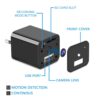 - 1080P Video Clarity USB Charger Camera record real 1080P HD video with a 70° wide angle of view and this camera looks like a small one phone charger adapter, no one can notice that it’s a camera.